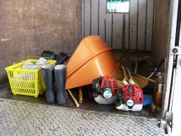 | 草刈り機(円盤、ヒモ)、ゴーグル(必要)、燃料、カマ、サラエ、竹ボウキ、カキボウキ、ヒモの予備、フォーク、着替え、帽子、タオル、小さいチリトリ、長靴、給油受け | |