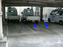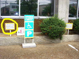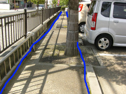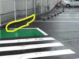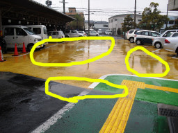 | 福祉住環境では、人間は5mmの段差があればつまづいてしまいます。ここのすべての駐車区画は、5mm以上の段差がたくさんありました。まぁ真中部分は、車を置いているので区画の四方の端っこが問題になるのでしょうが・・・ | |