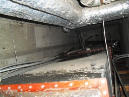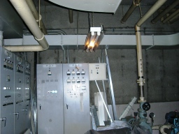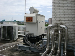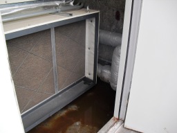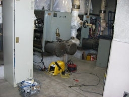 | これがエアハンです。簡単に言えばタンクの水をチラーで冷やしたり、温めたりして、エアハンに流します。エアハンで温かい空気や冷たい空気を作って、議場へ送り出しています。 | |