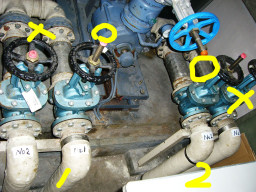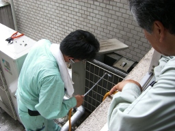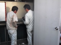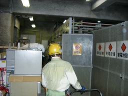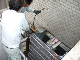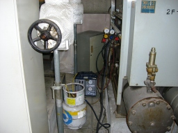 | 昨年同様、南館空調機切り替え(チラーボイラー)にともなうチラー洗浄業務。約200k、9:00〜16:00(6h×3人区)。J2薬?で洗浄後、N薬?で約2回洗浄し、水ですすぐ感じです。 | |