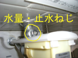 壁との隙間に、水量調整のネジがあります。 |