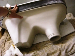 | 便器を掘って外して、乾燥させる素材のものを敷き詰めて(昔はアスファルト、今はFRP等)新しい便器を備えつけます。 | |