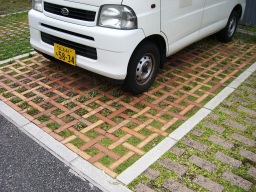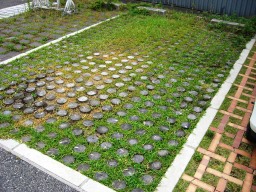| いろんなタイプの緑化駐車場がありましたが・・ | |