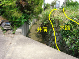 井溝の先端付近では、里道と当たっている。 |
