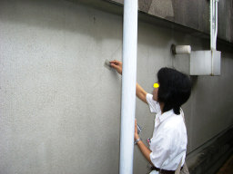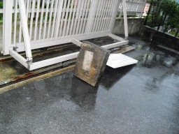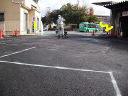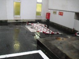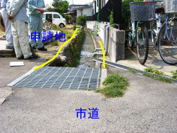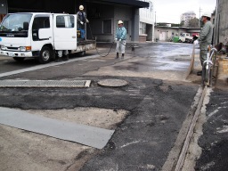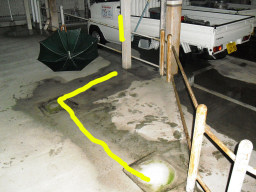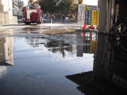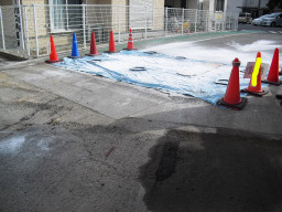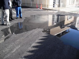 | 勾配が悪く、水たまりができる模様です。消防にお願いして、放水してもらいました。 | |