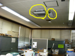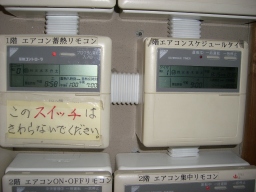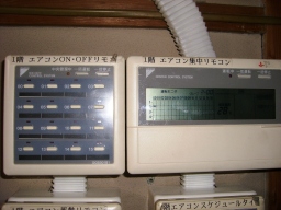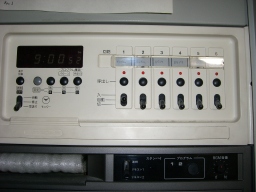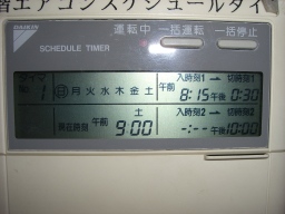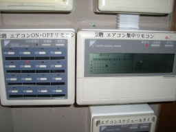 | この日の午後から空調入れました。(2-05)の電話交換室の空調タイマーをAM5時〜PM9時(プログラム2)で土日祝も含めて入れるようになりました。庶務Gより電話交換機更新工事により熱量の多い機械に変更したため。 |