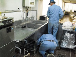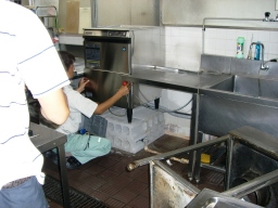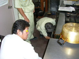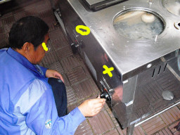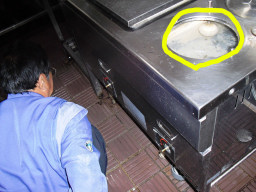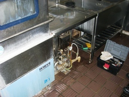 | 食堂、食洗機の故障。サーモ、ボールタップ、配線、タンク水漏れ等故障箇所多数。修理190kだが、機器自体1994年製と15年前であり古くてタンクの交換部品もありませんでした。修理しても水漏れは改善できず、ガスの火が水漏れで消えて不完全燃焼を引き起こす危険性があり、お勧めできない模様。よって取り換えになるが、同じ容量でガスなら990k、ガスではなく電気なら同じ容量で860k、少し容量を下げても750kと高額である。すべて工事費込みの値段。 | |