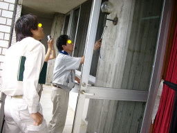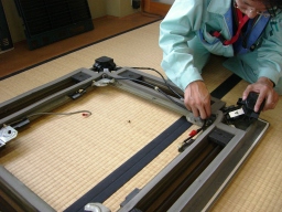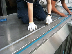 | 優先区画のクイックシートの貼り付けです。火を使い熱で付着させていきます。。。。。。。。。。。。。。。。。。。。。。。。。。。。。。。。。。。。。。。。。。 | |