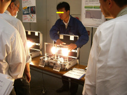 | これは、FMの電波により時刻受信しているそうです。あと太陽光とACの両方で動いているみたいです。電球が切れていたので(40W)交換していただきました。グロー(上等な方)も交換していただきました。 | |