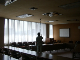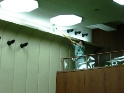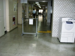 | 本日は、南館最後の閉館日で、毎年この日に定期清掃(ワックス)しています。8時30分に門扉を開けて、清掃員(5人工)をいれました。機械警備を解除して、各扉を順番に開け、電気をつけていきました。講堂は、事前に机とイスを横に寄せといてもらいました。16時過ぎには終了しました。それから各扉を全部閉めていき、機械警備を入れて戻りました。。 | |