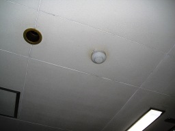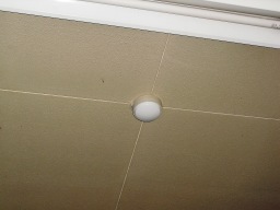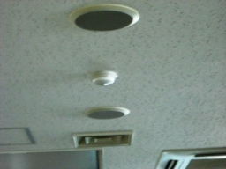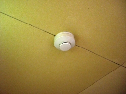 | 火災感知器、煙による感知器です。感知機の真中に隙間があいています。おそらくここで煙を感知します。。。。。。。。。。。。。。。。。。。。。。。。。。。。 | |