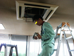 | 本日は、風のため熱交換カラー吹きつけは中止です。出納の空調機器の修理があったので、そちらをしていただきました。。。。。。。。。。。。。。。。。。 | |