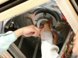 | 今回は、本体側の配管の一部から水漏れがあったため、圧着のソケットみたいなので(外周は鋳物、うち側はゴム)管を覆いドライバーで締め付けて修理していただきました。 | |