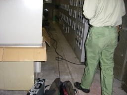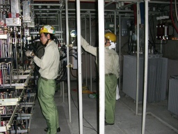 | 南館閉館日の本日より、高圧受電設備のうちパス(高圧地中開閉器)とキュービクルまでの地中高圧ケーブルの取替工事です。。。。。。。。。。。。 | |