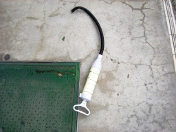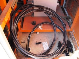 | これは、既存の高圧ケーブルです。ハンドホールごとに切断して引き抜いていきます。水で濡れていたからか、案外短時間で引き抜きが完了しました | |
