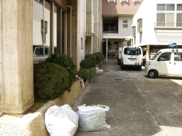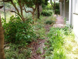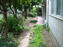 | (作業前)いつもの南館裏の草刈り、ドブさらい、剪定清掃。 | |