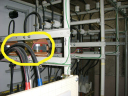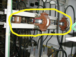 | 変成器(合計8個あります)H21年で15年経過により、来年度より毎年の停電点検を実施しなければならなくなります。 | |