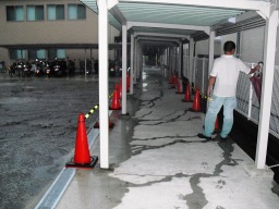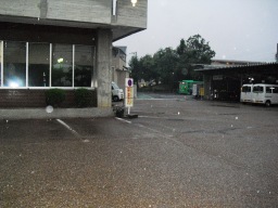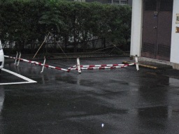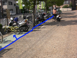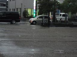| 舗装後の雨天時に水たまりを確認しました。一度再舗装をしたところですが、やはりここは勾配がとりにくく水たまりができてしまいます。駐輪場には水は流れ込んでいませんでした。 | |