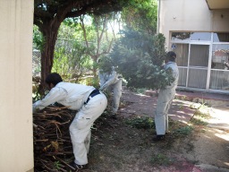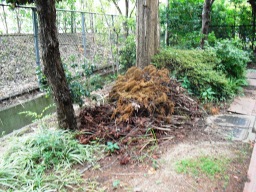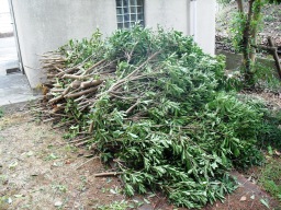 | (作業後)スコップ、小スコップ、カマ、ナタ、剪定バサミ、高枝バサミ、カキボウキ、竹ボウキ、サラエ、軍手、ゴム手、デミリン薬剤(錠剤)、ゴミ袋、除草剤(ラウンドアップ)、噴霧器等・・ | |