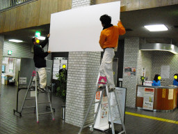 | 今度の看板設置の現調です。(2200×1200 FL+2000のところに設置予定です。。。。。。。。。。。。。。。。。。。。。。。。。。。。。。。。。。。。。。。。。。。 これ以外に、Lプレート、吊り下げ、案内レイアウト等で一式500k弱。他にフロアマーキングも施工予定 |