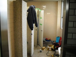 | 2Fトイレ修理が始まりました。向かって左側が前です。 | |