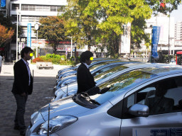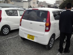 | リ−ス車4台の納車です(ダイハツ)。これは79号車です。以前の79号車は、青パト取って社教へあげるらしいです。 | |