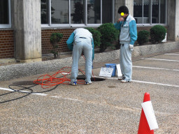台風の準備 水道パッキン交換 消防訓練 ガス調整器取替(フィルター清掃) 防災教育 納車 南館高圧ケーブル工事前現調 駐車場舗装工事 舗装雨天時