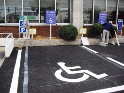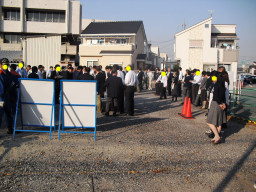 | 車いすマーク(国際シンボルマーク)は、本来車いす使用者だけの意味ではありません。下肢不自由者全般の人を指します。うちの駐車区画数としては、車いす利用者専用の区画スペース(間口3.5M以上)が必要になりますので、既存の数と同じ区画数を設けました。 | |