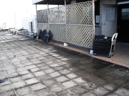 | 5/30(最後の土曜)の美化清に合わせて、今回は4F屋上部分すべてのコケ、草、土等を掃除しました。袋にして、10以上・・ | |
