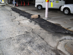 | 段差があるところは、このように擦り付けをしていき段差の解消をしなければいけません。平日も閉鎖するならこのようなことは必要ないのですけど。。。 | |