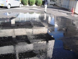 | アスファルトは透水性を使用していなため、勾配でしか水の排水機能がありません。。。。。。。。。。。。。。。。。。。。。。。。。。。。。。。。。。。。。。。。。 | |