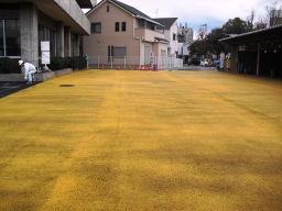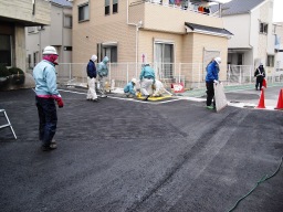 | いよいよ、特殊舗装の開始です・・この色は間違っても僕が選んだのではありません。 | |