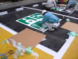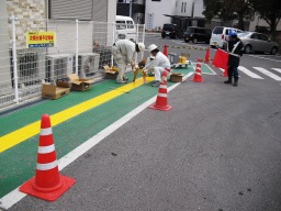 | 今度の特殊舗装は、ラインのマスキングも必要ですね。。結局7時前くらいになりました。 | |