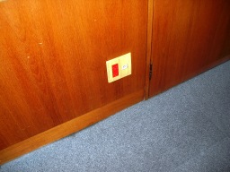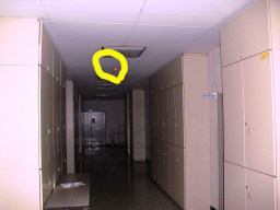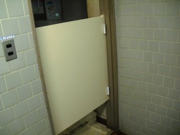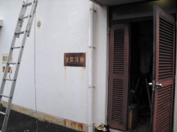 | 南館2F女子トイレ内の奥の扉内にも感知器(報知機)があります。。約1時間で南館内のすべてが終わります(機械警備会社へ電話しておく)。本庁舎も朝から〜お昼には終了しました。 | |