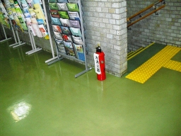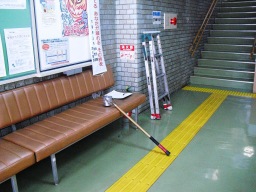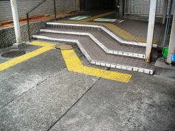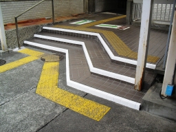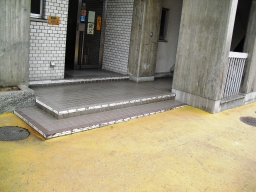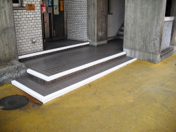 | 北出入り口の補修後、こちらの一番下の階段で数日前につまずいたとのことです。。今回も段鼻部分は足で踏むため、ある程度の期間しか塗装がもたないのではと思われます。。 | |