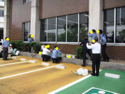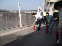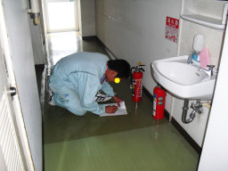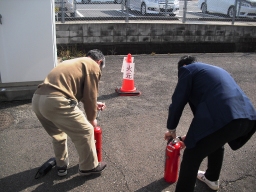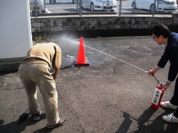 | 本日13:30〜15:00にて防災教育を実施いたしました。約25名(半分は新人さん)で、ビデオ講習→講義→水消火器実習で終了しました。。。。。。。。。。。。。。。。。。。。。。。。 | |