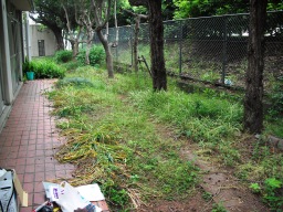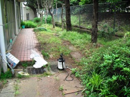 | 作業前。今回は、蚊の苦情で急きょいきなり作業を決めたので(苦情の連絡がいつもの時期より早くて、本日梅雨入りし、明日から当分雨のため)1人での作業となりました。。 | |