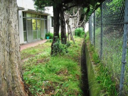 | 幸か不幸か、今週も美○清掃を行うことになったため、4F屋上の溝に溜まっている泥をかき上げ、袋に入れていきました。1人区×1h=4袋。 | |