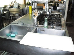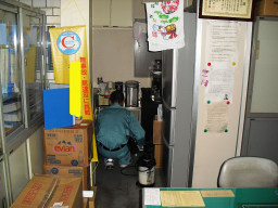 | 地下食堂の厨房の照明器具の電灯交換したにもかかわらず、チカチカ感が治らないとのことでした・・・。安定器の不良によるもので、安定器だけの交換も、器具ごとの交換も値段はさほど変わらないので、器具ごと交換(厨房仕様)にしました。 | |