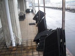 | 災害用の受信機?でしょうか・・?落ちて転がれば危ないかも!ただ、下は議場の屋根なので・・・大丈夫かな・・ | |
