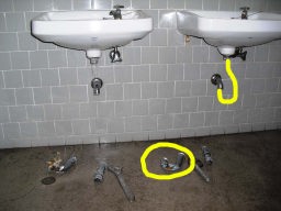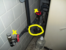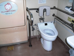 | 簡易オストメイト器具の取り付け工事。210k、午後〜16時くらいまでかかりました。背もたれと、蛇口を分岐して取り付けただけです。止水は、このトイレ内でできました。α | |
