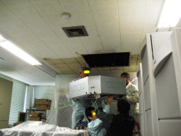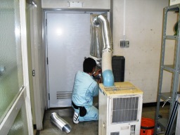 | 本日、電算室内の三菱エアコン→ダイキン5馬力相当エアコンに取り替え工事を行いました・・。 | |