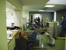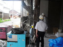 | 玄関出入口(北側)を完全に閉鎖して行いました。。 |
