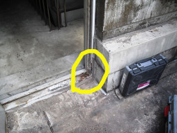| 5Fドアが閉まらなくなったため、黄色の○部分を削ってもらいました。なんとか開閉できるようになりました。 | |