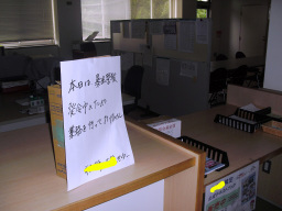 | 何とか無事終了しました。4人工、9:00〜15:30で、本庁後→別館→消防もやるそうです。。 | |