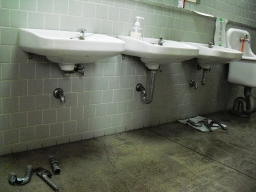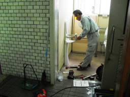 | A続いて、排水管清掃です。洗面所、給湯室等。水道局もやってもらいました。 | |