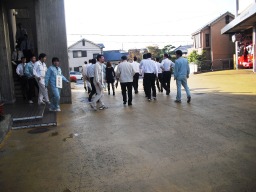 | 新人さんを中心に水消火器実習の様子です。 | |