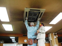 | (着工前) 9:00〜着工。4人区〜15:00。前機種の室内機基盤の修理が在庫なしで不可のため、新機種投入 | |