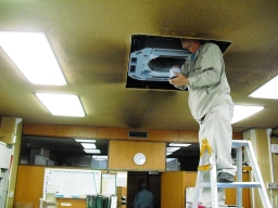 | 今日は、1〜3Fと別館の主に32W電灯を間引きました。業者さんも手伝ってもらい3人で手分けしてやりました。ほぼ午前中で終わりました。 | |