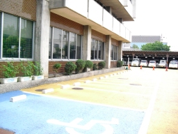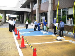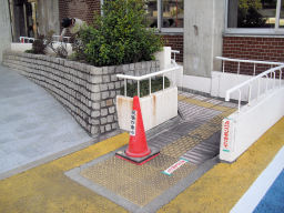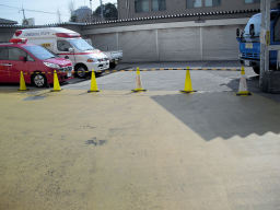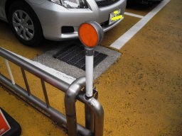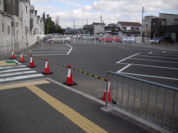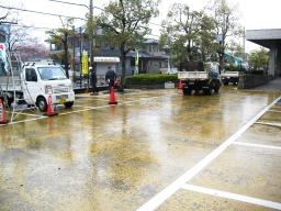 | 前日には、駐車区画の西側(道路側)をコーンで塞いでもらっていました。(剪定中) | |